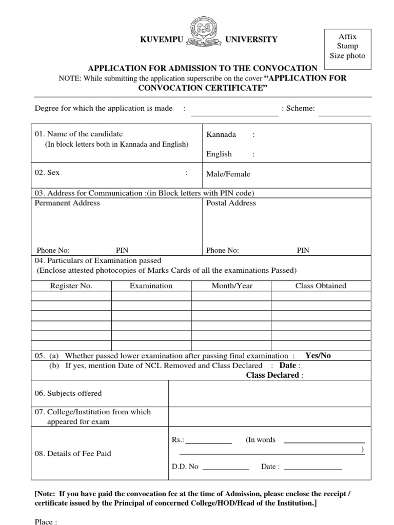 Kuvempu University Convocation Certificate / Established in 1987,it is a university with a distinctive academic profile,blending in itself commitment to rural ethos and a modern spirit.
