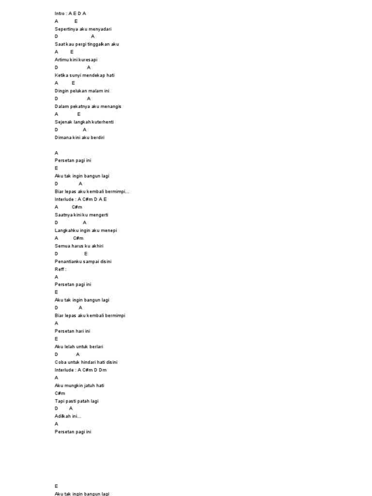 New Eta Persetan Pagi Ini Lirik / A e sepertinya aku menyadari f#m d saat kau pergi tinggalkan aku a e artimu kini ku resapi f#m d ketika sunyi mendekap hati.